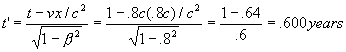 t = t’/Clock Rate = 1/.6 = 1.667 years ago