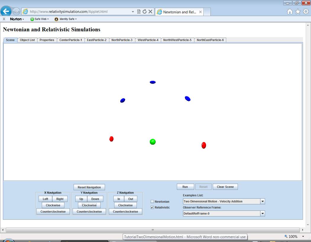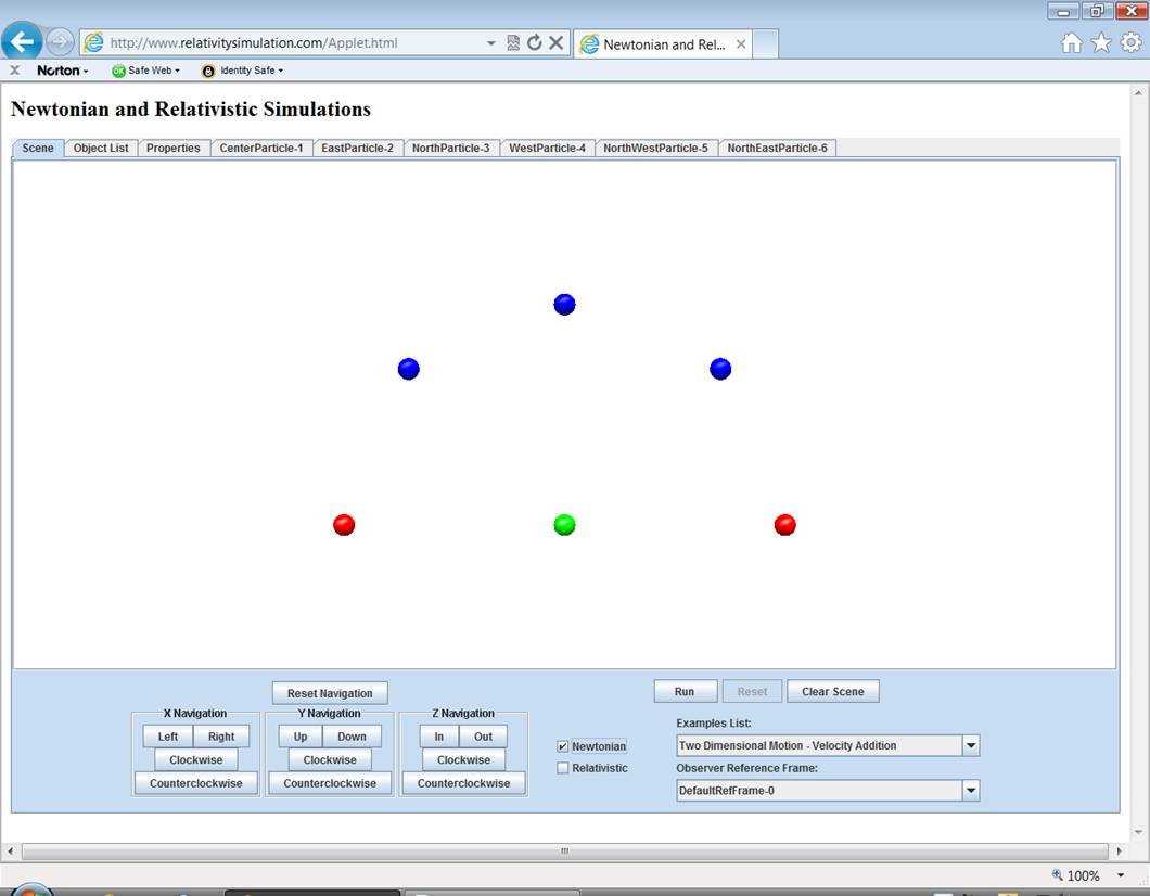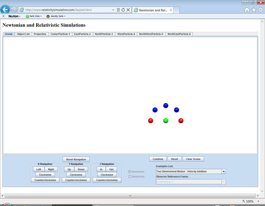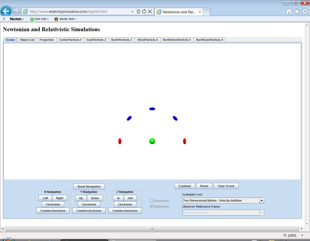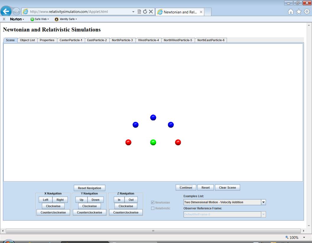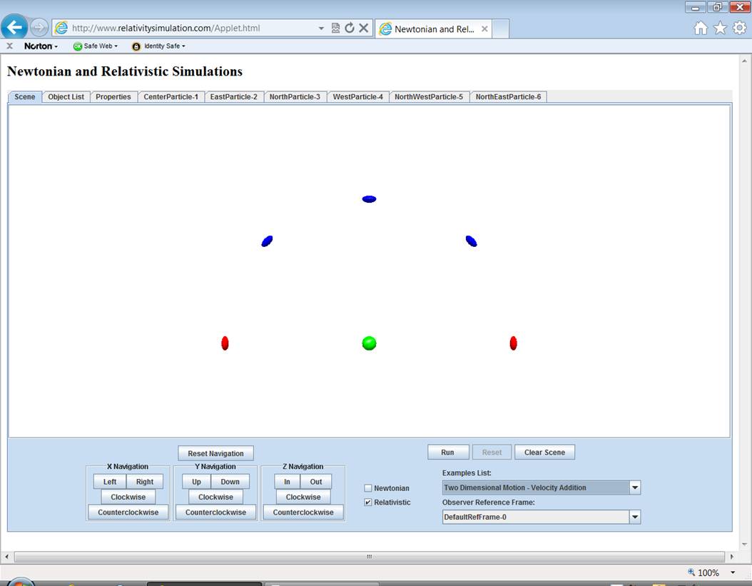 again and switch to the default reference frame. Then click the Relativistic checkbox. Note