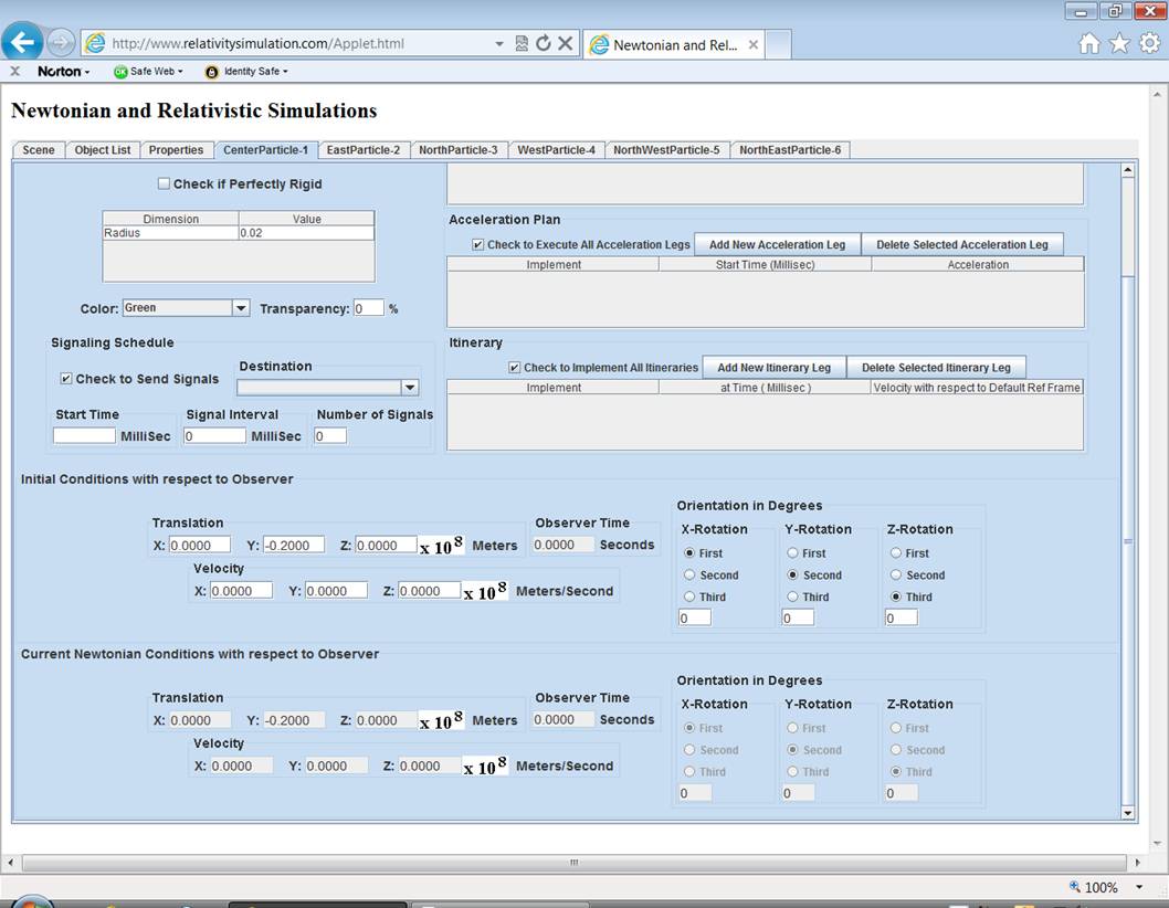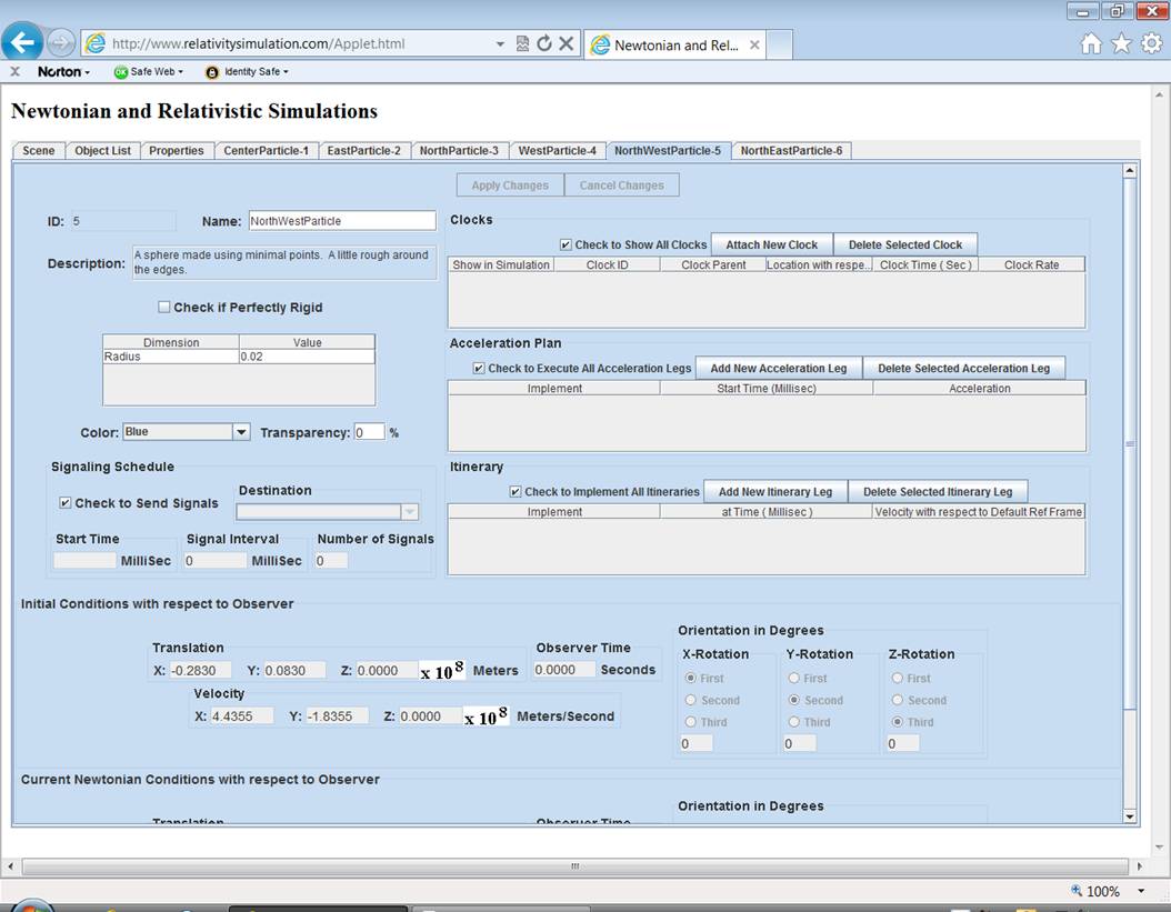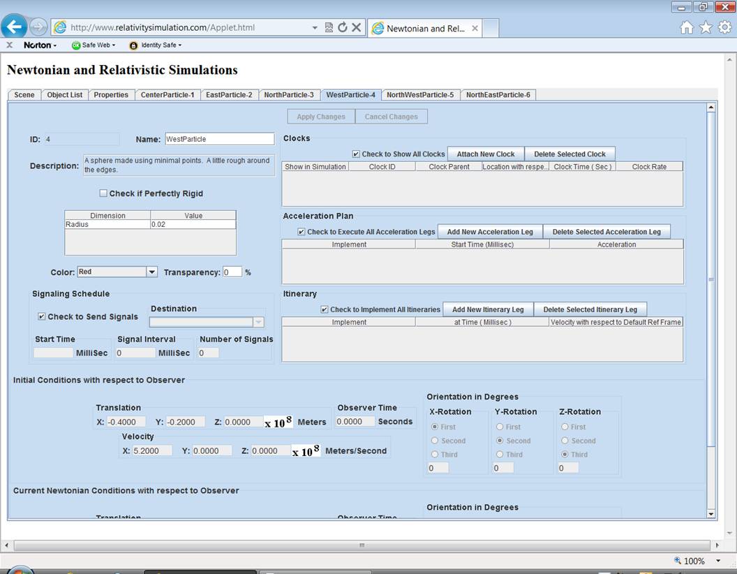 particles, is converging on the green particle. Click on the tabs for the WestParticle and examine its velocity. It is 260,000,000m/s
