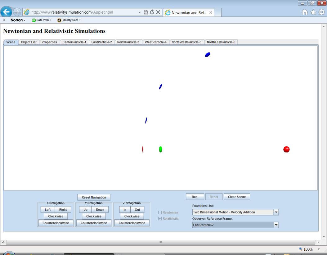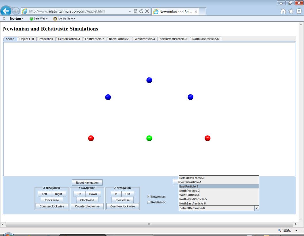 position of the particles with respect to the EastParticle is unexpected. Run the simulation, the EastParticle is at rest with respect to you and the